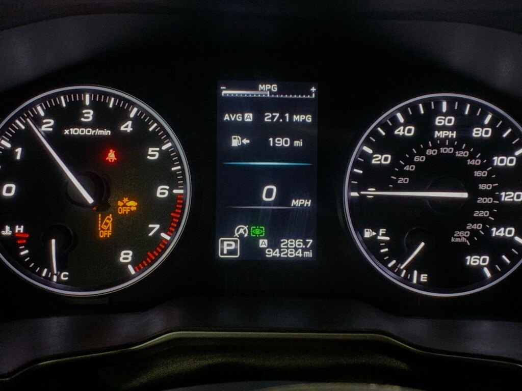 - Lane departure: EyeSight Lane Keep Assist active